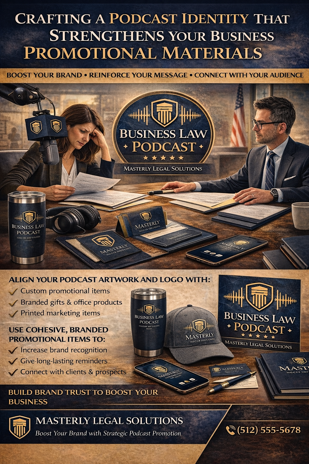 is more than a microphone and a conversation. It is a reflection of your brand, your expertise, and your position in the industry. When thoughtfully created, a podcast becomes a powerful extension of your overall marketing ecosystem. At Masterly Legal Solutions, we work with business owners, founders, and professionals who want their podcast identity to align seamlessly with their promotional products and long-term strategy.