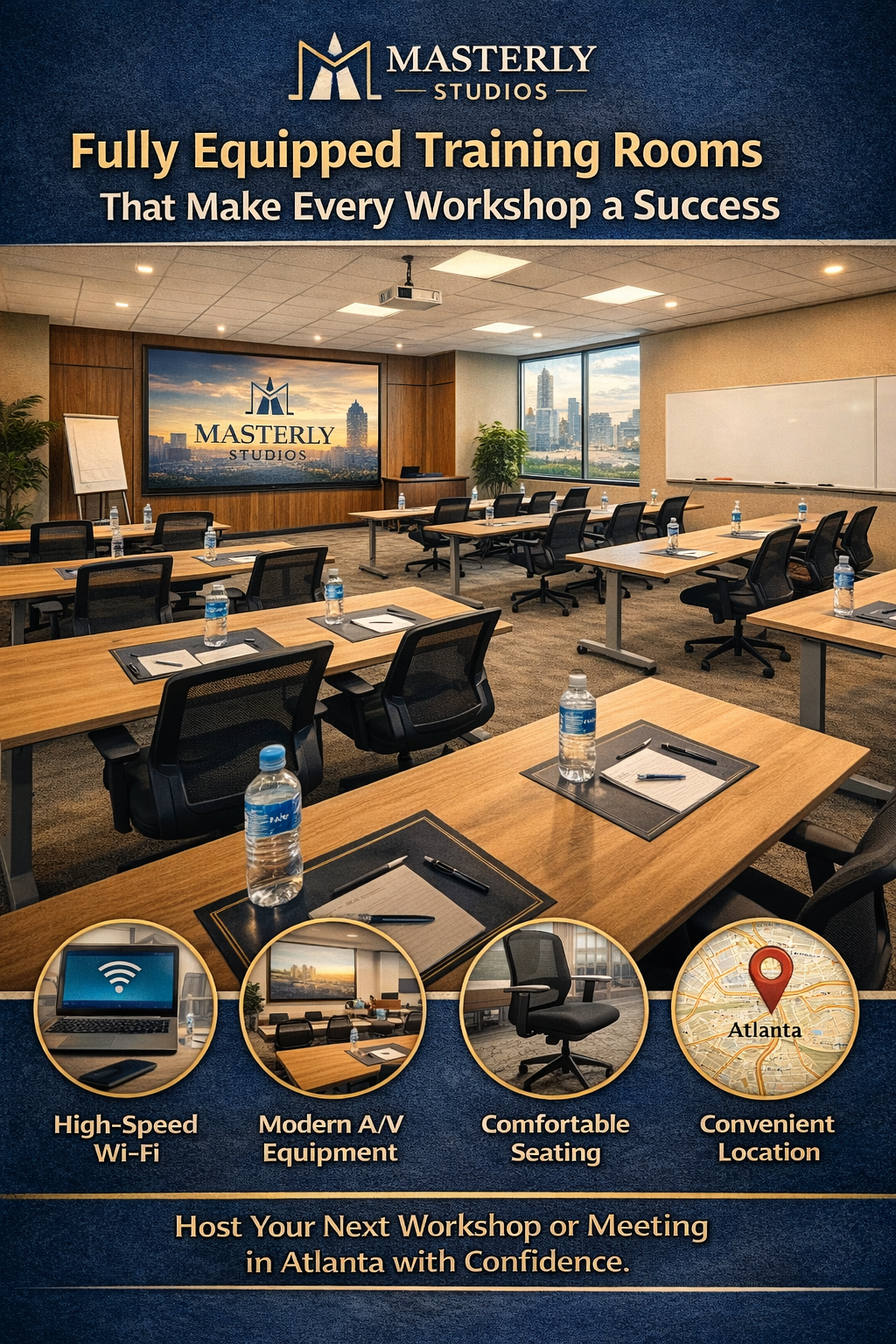 Planning a workshop, meeting, or corporate event can feel overwhelming, especially when the right space makes all the difference. At Masterly Studios, we understand that the environment shapes the experience. Whether you are hosting a strategy session, classroom workshop, or executive meeting, the room you choose impacts focus, engagement, and results. That is why we provide fully equipped rooms designed to help you create meaningful events in Atlanta.