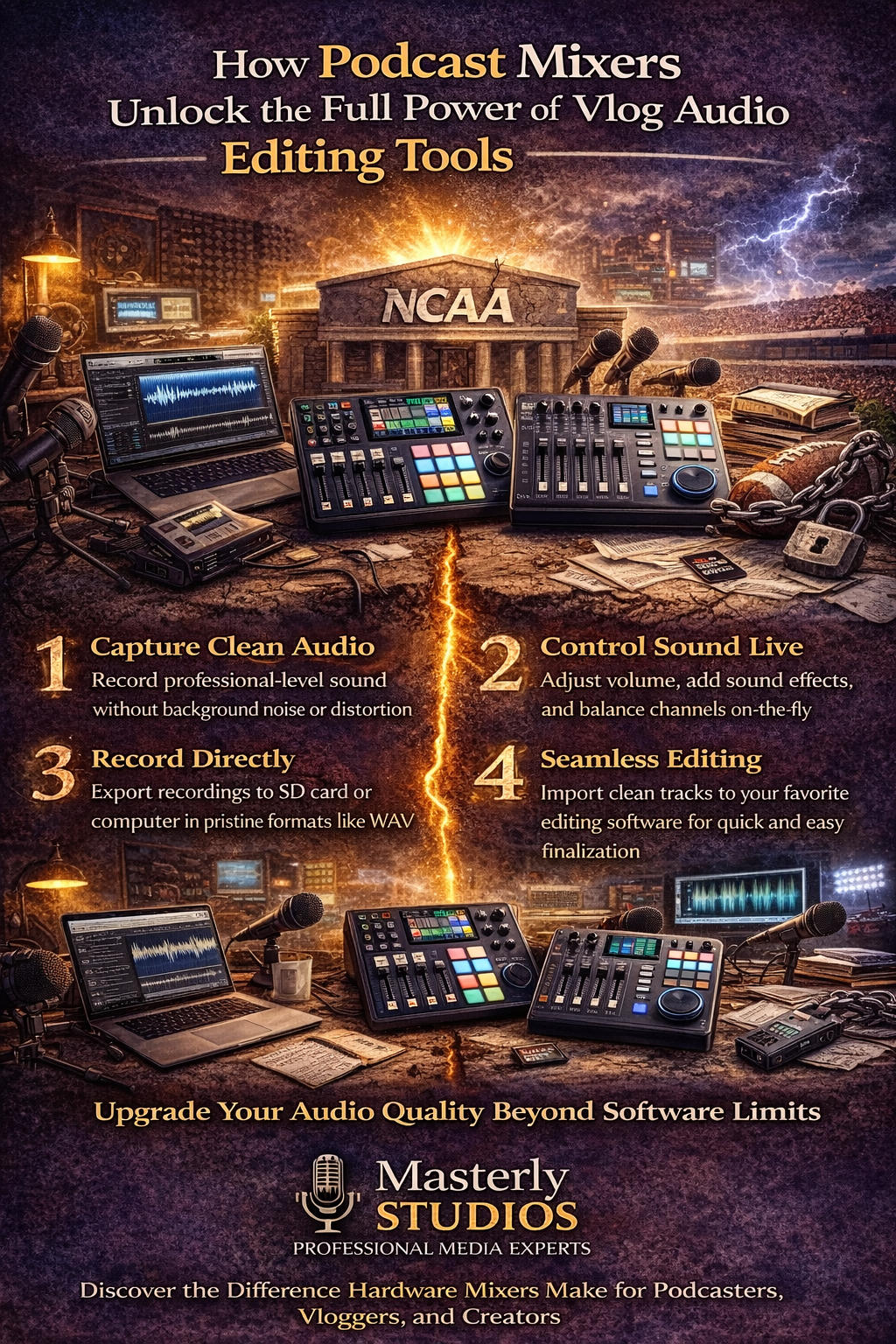 At Masterly Studios, we work with podcasters, vloggers, and creators across the country who want to elevate their production quality. One of the biggest shifts we see is when creators move from relying only on software to mastering hardware-first setups. When you combine a powerful podcast mixer like the Tascam Mixcast 4, Zoom Podtrak P8, or DLZ Creator XS with smart vlog audio editor tools, you unlock performance that software alone simply cannot deliver.