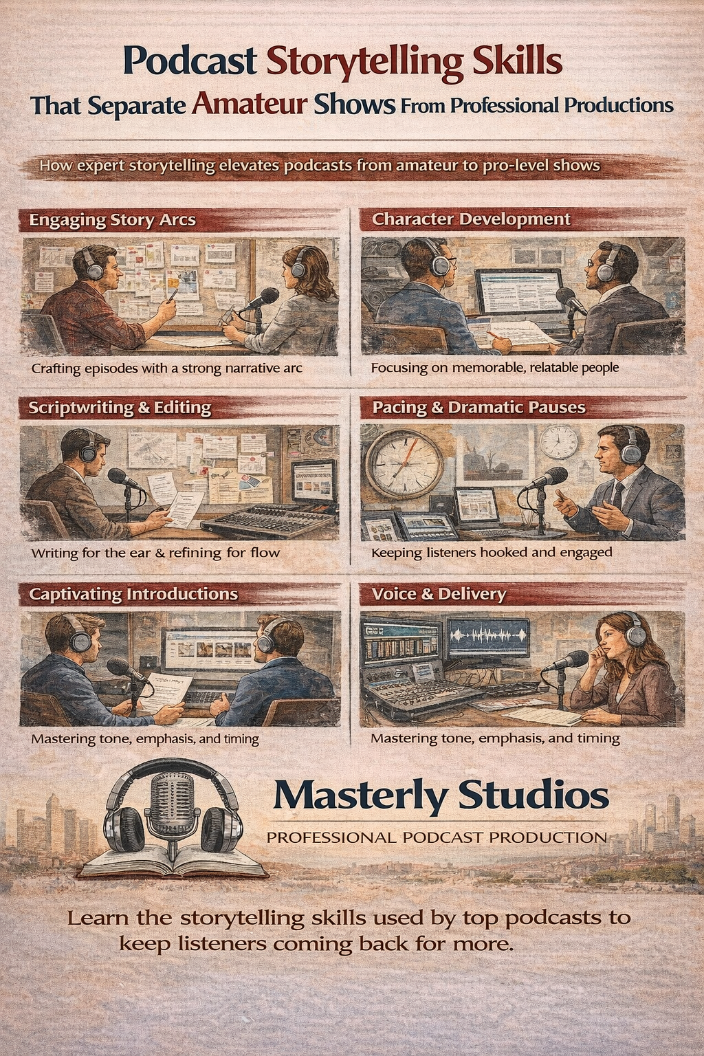 starts with an idea, but not every podcast grows into a show people eagerly wait for each week. Many creators launch with passion and good intentions, yet only a small group manage to build storytelling podcasts that feel polished, immersive, and unforgettable. The difference is rarely about expensive gear alone; it’s about storytelling skill. At Masterly Studios, we work with creators across the country who want to close the gap between amateur efforts and professional podcast productions by mastering the craft behind great stories.