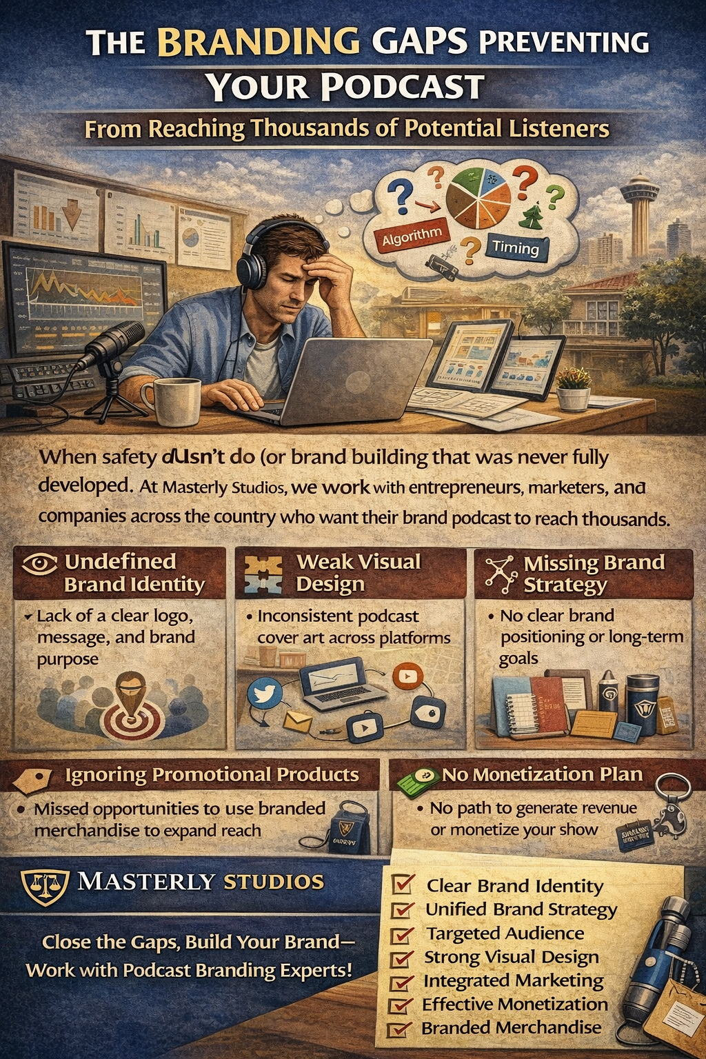 If you are ready to move beyond basic production and build a brand podcast that truly supports your business, we invite you to take the next step. At Masterly Studios, we specialize in helping entrepreneurs and companies refine their brand strategy, strengthen brand identity, and implement practical marketing strategies that drive measurable growth.Our team works with clients throughout the country and nationally, offering a collaborative and personalized approach.